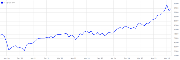 However, following the outbreak of war in the Middle East, global markets have been volatile. In the UK, the FTSE 100 yo-yoed throughout March and into April, dipping below 10,000 at the end of March.